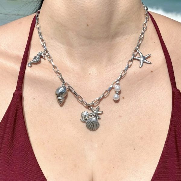 Καλοκαιρινό κολιέ με charms σε ασημί χρώμα από ανοξείδωτο ατσάλι 🌊☀️